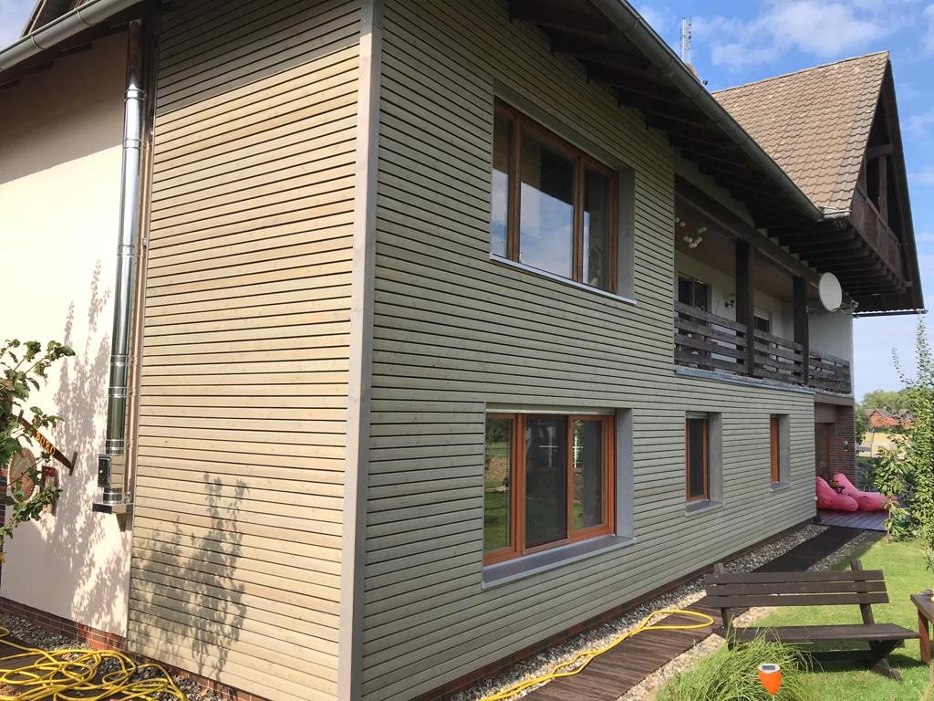 Mit einer energetischen Fassadenverkleidung schützen und verschönern se Ihr Haus, verbessern den Wärmeschutz der Außenwand und senken ihre Nebenkosten. Holz ist dafür wegen seiner wärmedämmenden Eigenschaften bestens geeignet und lässt sich an jeder Außenwand montieren. Putz und Ziegelstein können bleiben wie sie sind. Außerdem erhalten Sie für die nachträgliche Dämmung von Außenwänden eine staatliche Förderung.